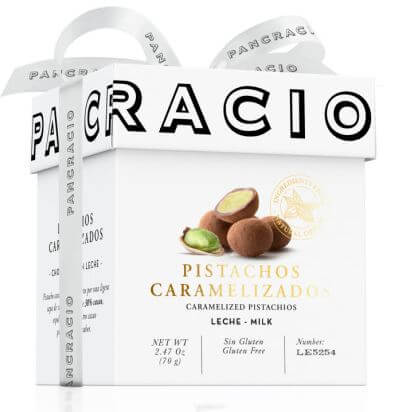 카카오 38%의 밀크 초콜릿으로 가볍게 코팅된 캐러맬라이즈 피스타치오